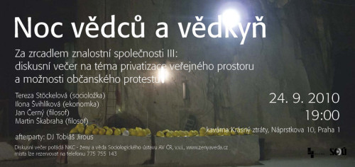 Za zrcadlem znalostní společnosti III: diskusní večer na téma privatizace veřejného prostoru a možnosti občanského protestu