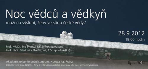 NKC – ženy a věda Sociologického ústavu AV ČR, v.v.i., pořádá diskusní večer v rámci celoevropské akce Noc vědců. V diskusi se budeme věnovat postavení žen ve vědě a to především na vyšších patrech akademického světa.