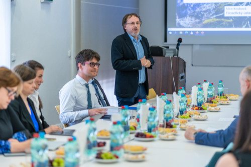 Schůzka proběhla v Akademickém konferenčním centru. Její účastníci, zástupci vedení a vybraní vědečtí pracovníci a pracovnice obou navštívených ústavů, s ministryní diskutovali o možnostech spolupráce české vlády s pracovišti Akademie věd působícími v oblasti společenských a humanitních věd. Vedle představení výzkumné činnosti obou pracovišť došlo k přednesení tří prezentací věnovaných tématu tzv. odolné společnosti (Alice Koubová / FLÚ AV ČR, Petra Guasti / SOÚ AV ČR, Paulina Tabery / SOÚ AV ČR), které je zároveň leitmotivem aktuálního programu Strategie AV21 Odolná společnost pro 21. století, a také jednou ze tří tematických priorit Akademie věd v oblasti vědy a výzkumu v rámci českého předsednictví EU.