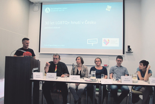 V diskusním panelu usedli např. dlouholetý prezident organizací SOHO a Gay Iniciativa Jiří Hromada, bývalá Zmocněnkyně pro lidská práva ČR Martina Štěpánková, dlouholetý člen brněnského STUDu a bývalý mluvčí GL ligy Martin Strachoň, trans (ex)aktivistka Olga Pechová a politoložka Kateřina Vráblíková. Dikusi moderoval sociolog Zdeněk Sloboda, který je zároveň spoluzakladatelem LGBT organizace PROUD a současným přesedou Výboru pro sexuální menšiny Rady vlády pro lidská práva.